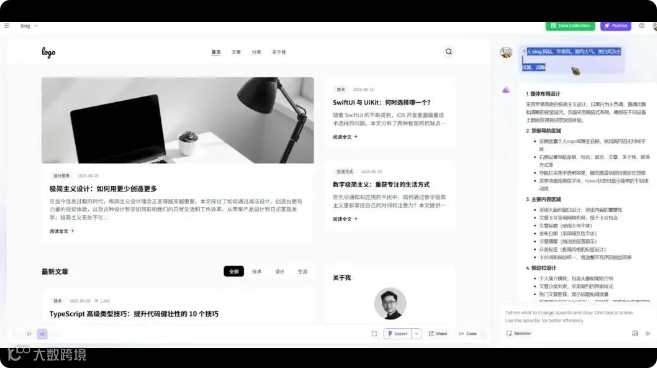 在实际测试环节,Readdy.ai 的表现堪称惊艳。当用户提出生成简约黑白风的个人博客网站这一需求时,它输出的页面布局简洁而不失条理,字体比例协调得当,留白处理更是精准拿捏,整体视觉风格甚至超越了许多专业设计师打造的独立博客作品。页面中的每一个元素都经过精心设计,无论是标题的排版、正文的行距,还是图片的展示方式,都体现出了极高的设计水准。更为贴心的是,若用户对生成结果的某些细节不满意,还能通过选区修改功能进行精细化调整,进一步完善设计。用户可以轻松地调整元素的位置、大小、颜色等属性,而无需具备复杂的设计知识和技能。
