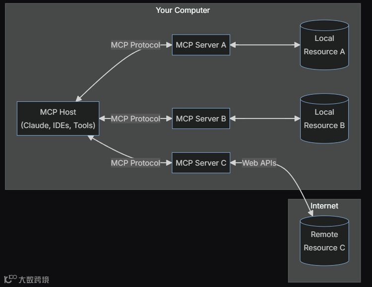 在Google推出A2A之前,Anthropic的“模型上下文协议”(MCP)已经在Agent工具集成领域崭露头角。MCP通过客户端-服务器架构,将大模型与数据源直接连接,解决了模型与数据孤岛的隔离问题,成为当时备受认可的行业标准。然而,两者的技术路线存在本质差异:MCP更偏向于传统API模式,强调模型对工具的调用,而A2A则聚焦于Agent之间的平等协作,允许每个Agent以完整的应用形态参与生态。