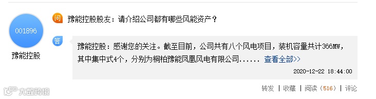 有投资者表示,这股命太好了,光伏涨的时候是龙头,跌的时候又是火电概念;火电概念跌了,又是风电股。
