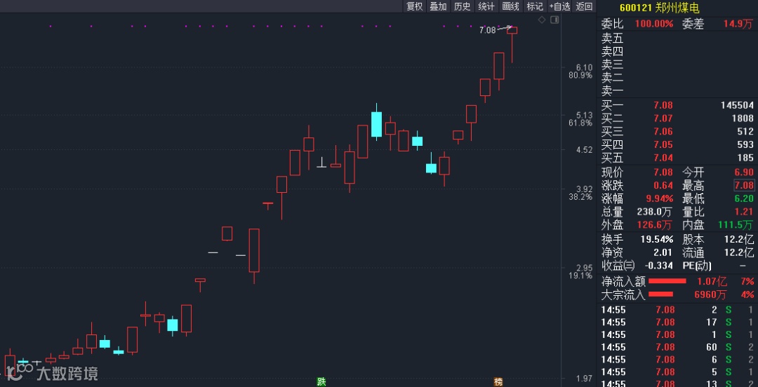 郑州煤电涨停,迎来五连板。该股从11月20日开启四连板走势以来,累计涨幅达202.56%。