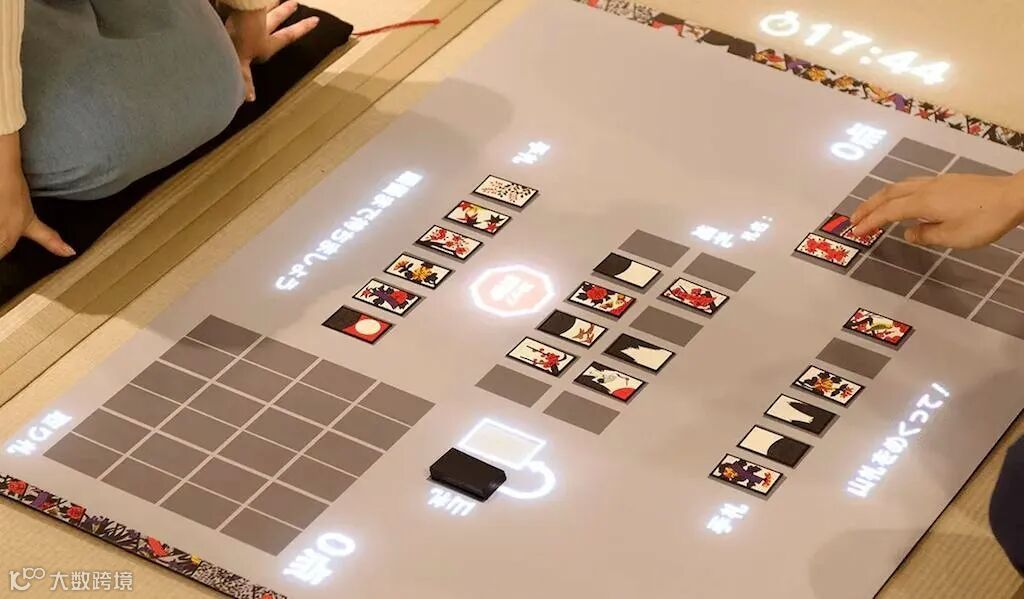 在博物馆的花札纸牌展示区,任天堂更是用新技术教会年轻人玩古老的花札纸牌。天花板上的摄像头和投影仪通过图像识别实时分析牌面,用 AR 投影引导玩家学习规则和玩法。花札是任天堂创业的起点,135 年后的今天,任天堂依然将乐趣传递给了后人。