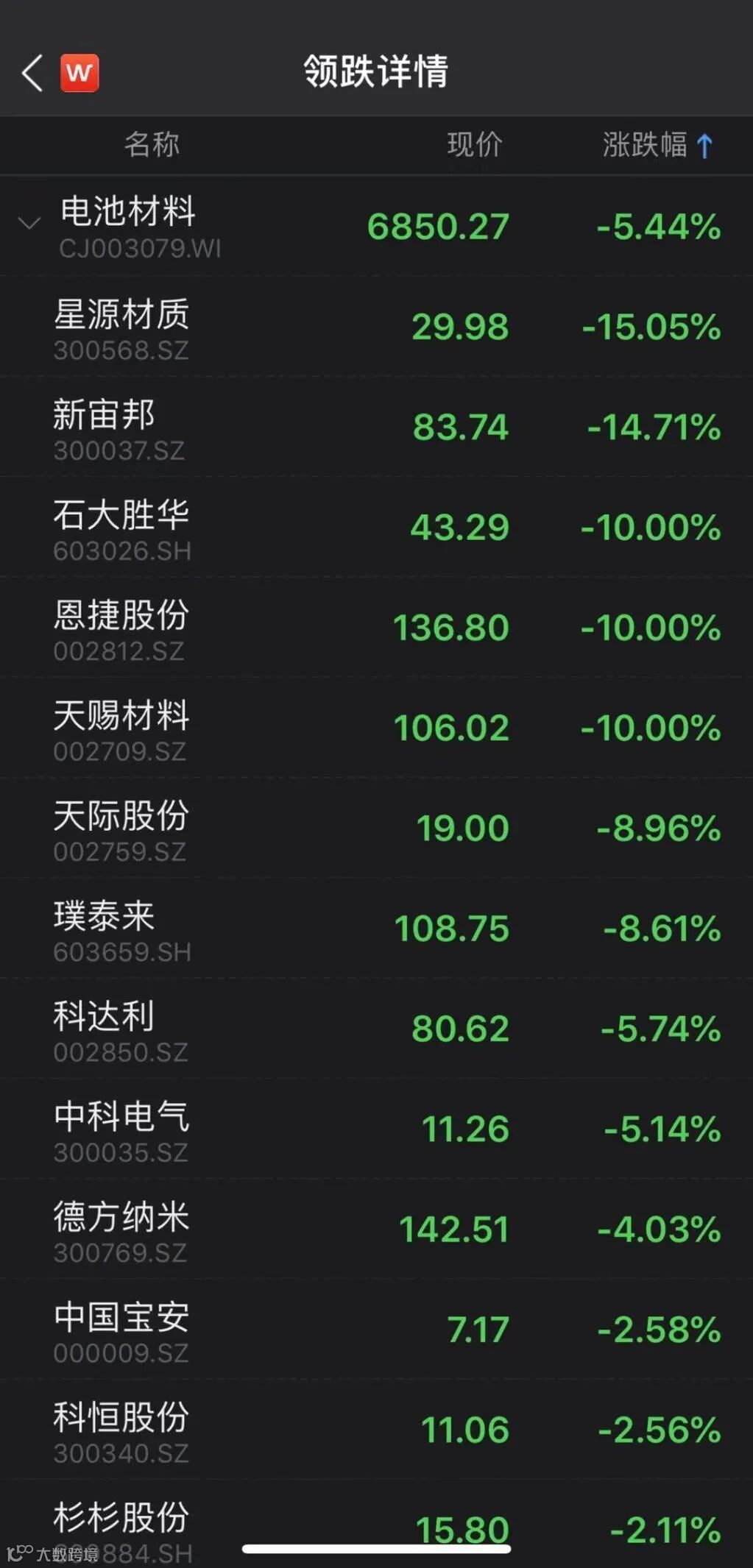 锂电隔膜、电解液个股全线大跌