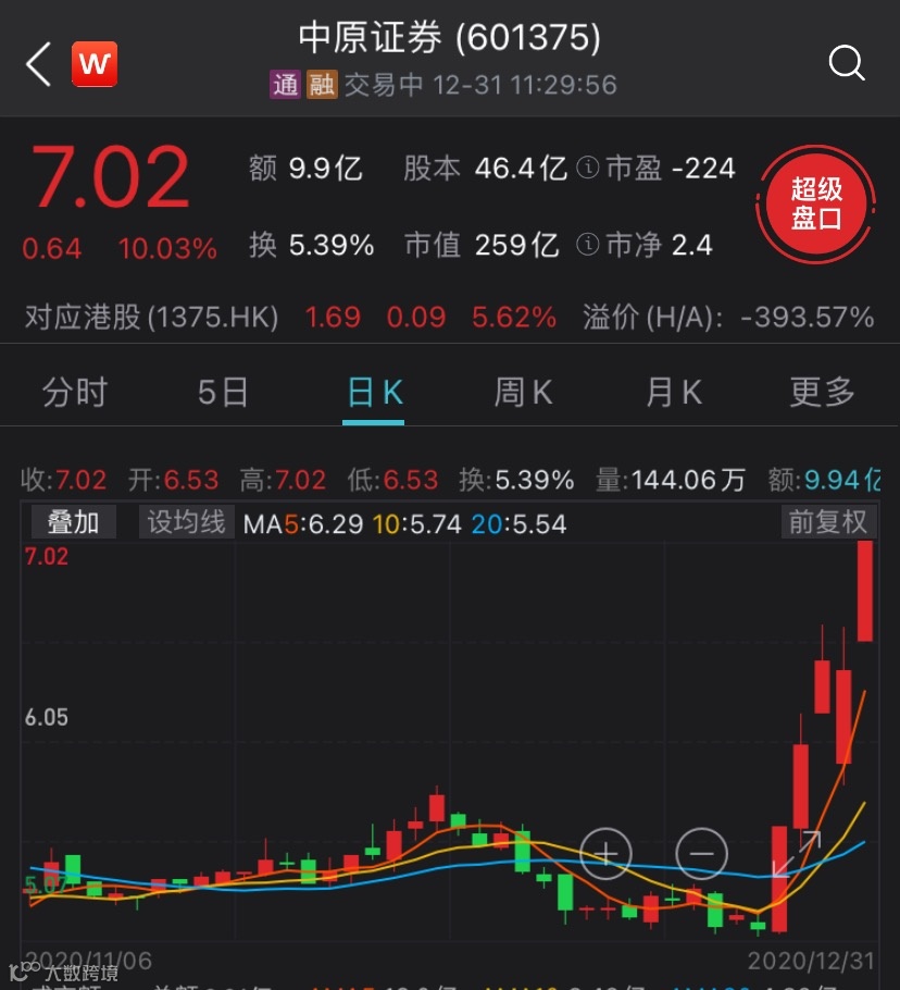 12月31日,2020年最后一个交易日早盘,“牛市旗手”券商板块冲锋在前,引爆市场普涨行情,餐饮旅游、软件、航天军工板块纷纷爆发。其中,中原证券近5个交易日内涨逾37%。