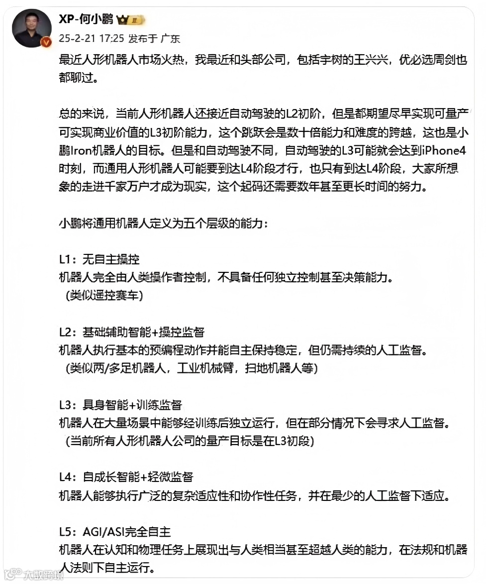 然而,当前人形机器人仍处于商业化起步初期。技术突破、共性问题解决以及场景落地,仍是产业发展面临的主要挑战。以自动驾驶等级作类比,目前人形机器人接近 L2 初阶,而实现具备商业价值的 L3 初阶能力,还需克服巨大的技术难题。不过,众多从业者对行业发展保持乐观,大企业的纷纷入局,带来了资金、技术和人才,有望推动人形机器人的创新与产业化进程加速。