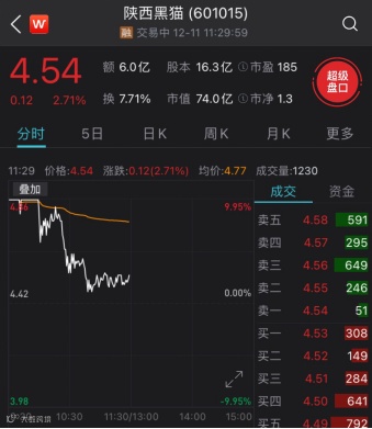 顺周期板块内,不少个股也感受到了从“天”到“地”的变化。其中,陕西黑猫开盘涨停,开盘15分钟后短线开板后继续保持涨停态势;临近10:00,股价跳水,随后震荡走低。截至午间收盘,陕西黑猫涨幅缩窄至2.71%。