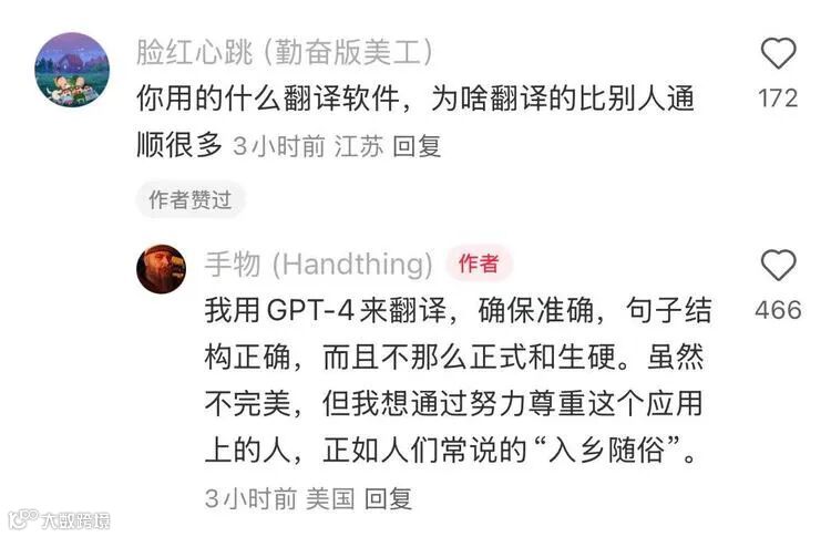 初入小红书,这些“TT难民”只是想找个地方延续在TikTok的互动,他们在帖子和评论区积极分享信息、拉人互关。但很快,他们发现小红书既熟悉又陌生。美国用户习惯用生活照当头像,对满屏的“momo”头像充满疑惑。为融入平台,他们纷纷发布详细自我介绍,凭借共同爱好寻找同伴。无论是《恋与深空》的粉丝,还是霉粉群体,都在小红书上展开了热烈的交流。网友们还互相分享网图、网梗,外国友人在中文教学下学会了“快哉快哉”“YYDS”等表达。随着交流深入,中文翻译需求增加,小红书上出现了各种独特的中文翻译,其中GPT4翻译的英文更受好评。