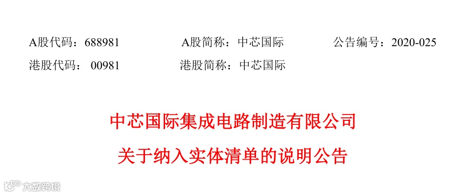 针对被美方列入“实体清单”一事,中芯国际20日晚做出回应。