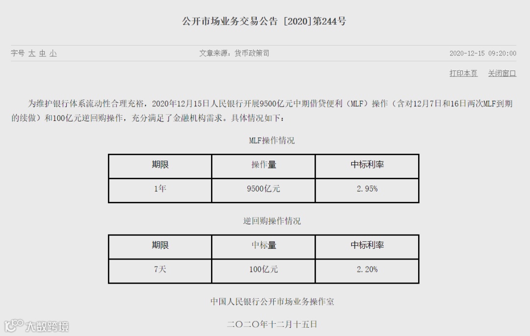12月15日9:20,备受期待的MLF操作结果准时揭晓:9500亿元!此次MLF操作量超过上个月16日刚刚创出的历史纪录,再创新高。