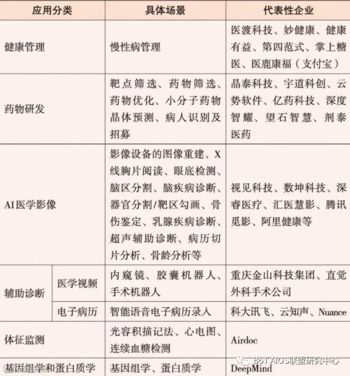 AI医疗主要应用场景及代表性企业
