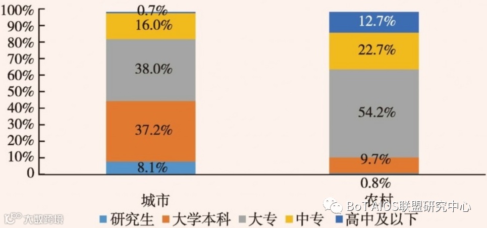 在农村卫生从业人员中,约56%人员从业年限超过10年,且有24%的医师从业年限在20—29年,而具备大学本科及以上的从业人员仅占农村卫生从业人员总人数的0.8%。