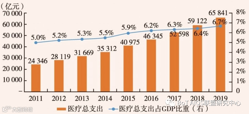 截至2019年,我国医疗卫生总支出已达6.6万亿元。