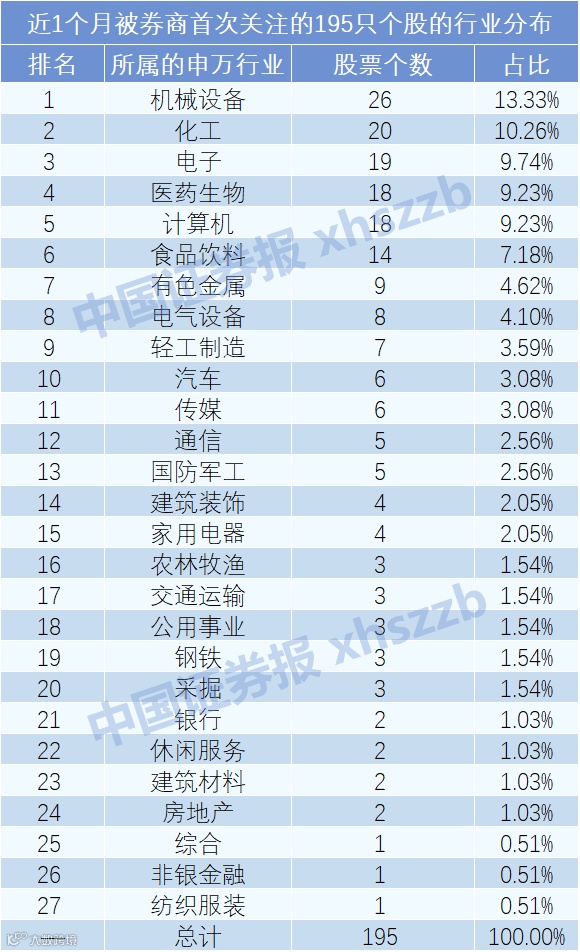 哪些行业门类最受券商青睐?195只个股12月以来的市场表现如何?哪些行业表现最佳?