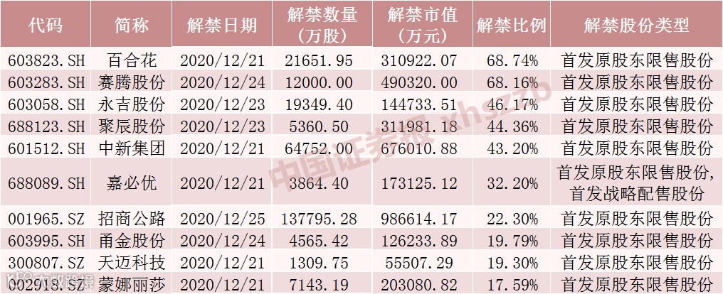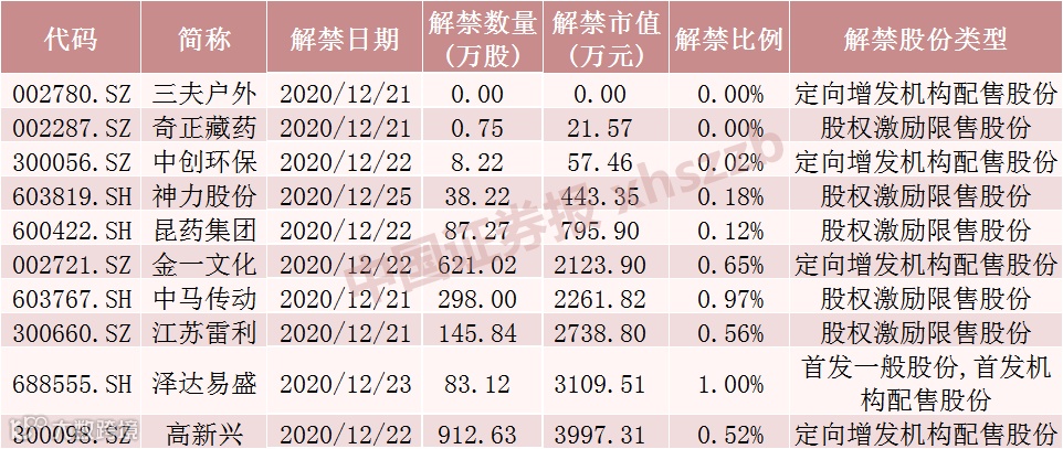 下周解禁股全名单