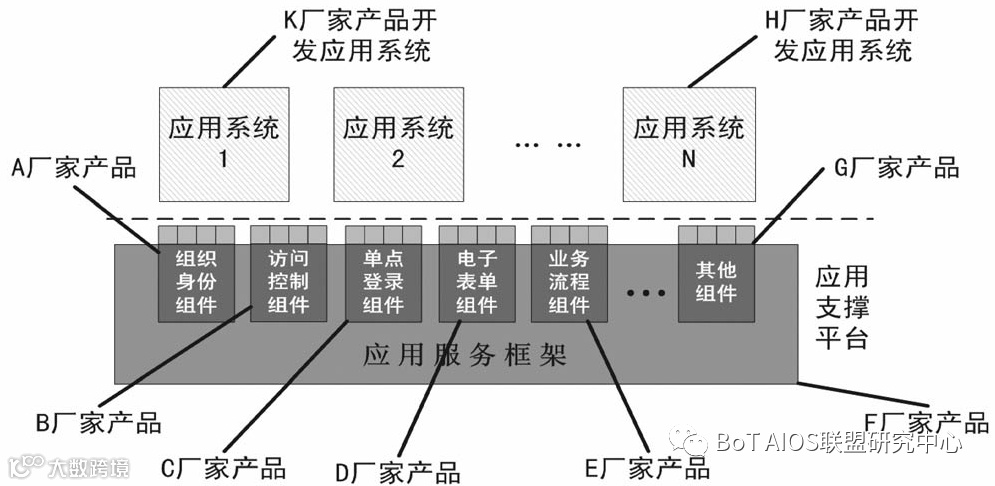 公共应用支撑平台包括应用服务运行管理框架、组织身份服务组件、访问控制服务组件、单点登录服务组件、消息服务组件等重要部分组成。
