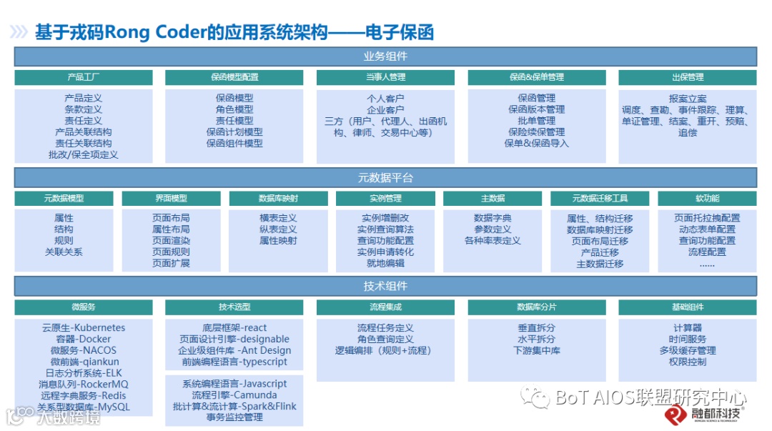 例如某个核心业务系统包含多个业务模块,每个业务模块都有灵活可配置的需求,所以戎码Rong Coder的产品架构设计是在应用架构上引入一层通用的元数据管理平台结合低代码的各种设计器,在该元数据平台至少构建各个面向特定业务领域的应用模块。