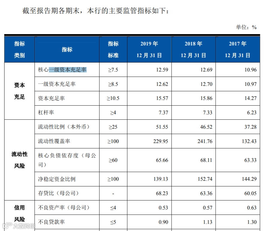 资产质量方面,2017-2019年,上海农商银行不良贷款率分别为1.30%、1.13%、0.90%,拨备覆盖率则分别为253.60%、342.28%和431.31%。