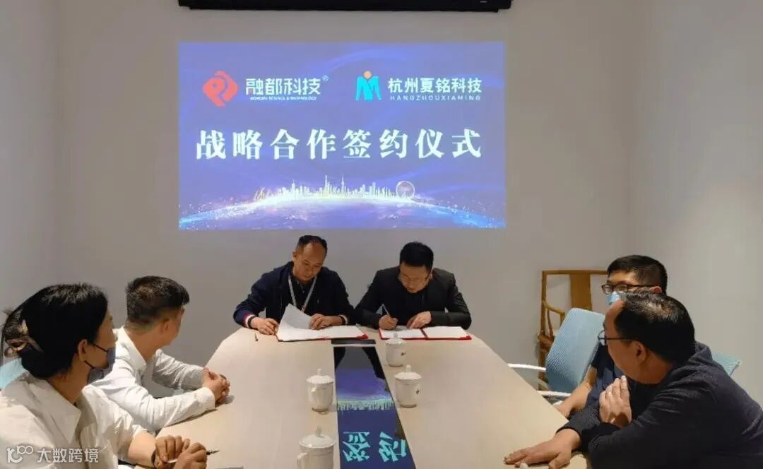 近日,融都科技与杭州夏铭科技有限公司签署战略合作协议,双方将在未来乡村建设等领域进行全方位交流与合作,共同推动数字乡村的建设与发展。杭州夏铭科技总经理蔡建波,常务副总林晓,融都科技常务副总裁俞荣军、产品副总裁赵玉新及相关负责人出席签约仪式。