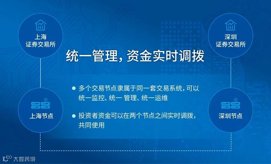 (4)沪深两地双中心报盘:单资金账号双中心实时划拨,就近报盘