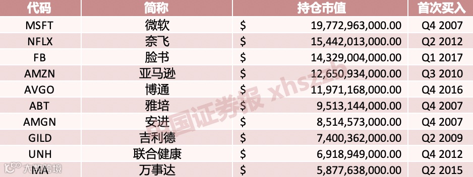 截至三季度末,资本集团美股组合的前十大重仓股为微软、奈飞、脸书、亚马逊、博通、雅培、安进、吉利德、联合健康、万事达。信息技术和医疗健康占绝对主导地位。前十大重仓股中,4只医疗健康股的持仓市值合计已达323.47亿美元。