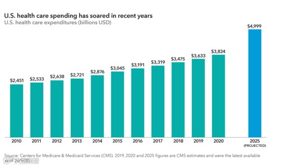 资本集团认为到2025美国的医疗健康方面支出将大幅增加