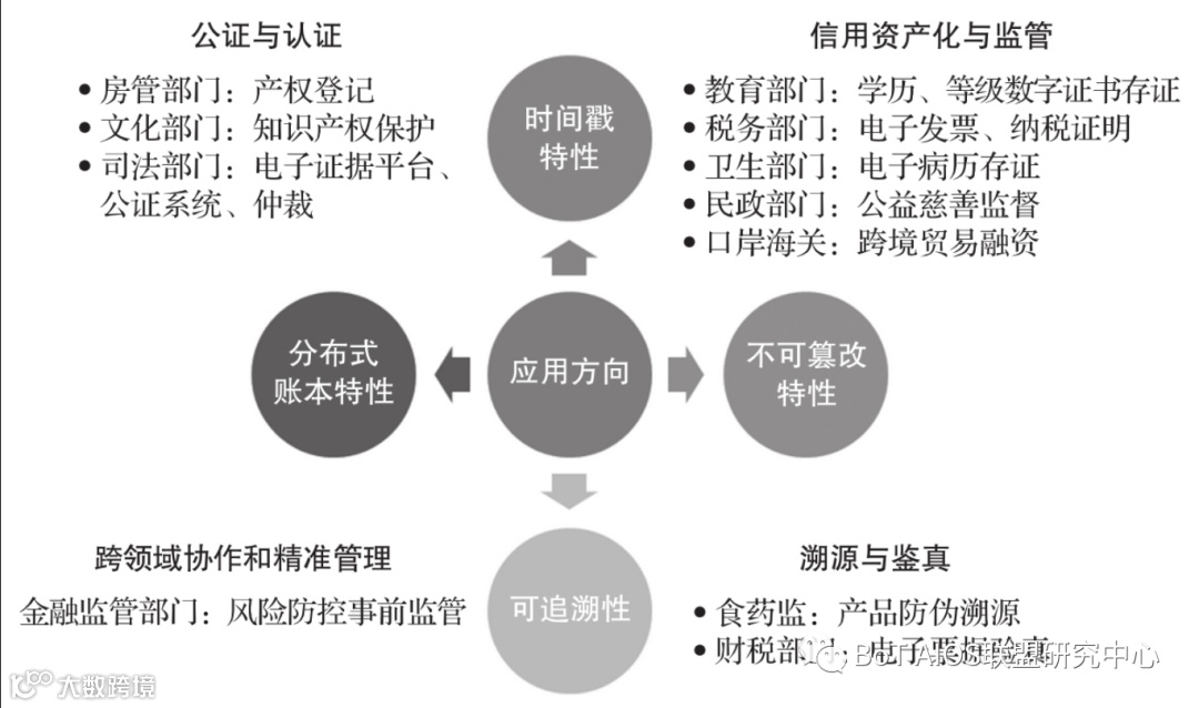 政府部门是行业政策的制定者和改革推动者,在充分论证新技术的可用性和安全性之后,向公众和应用机构推广技术,以帮助改革参与者接受改革措施、明确个人数据的使用范围,以加快推进改革政策的实施。区块链有多种特性,可以应用于信息、金融、合规、文化、医疗卫生等行业领域和公共事务服务场景中,用于改善公共服务领域的管理水平。