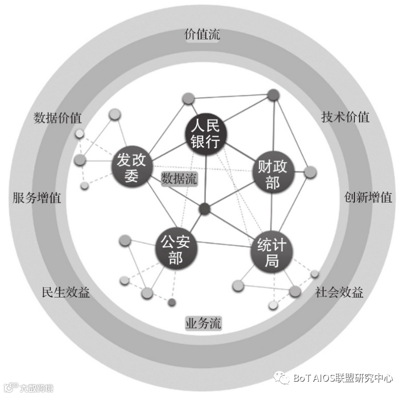 政府数据管理、共享、开放的长远目标在于引导和鼓励多领域、多层次的数据流通,建设一个“全社会运行数据的生态系统”。构建数据交换共享生态圈,“全社会运行数据的生态系统”具有一点记录、全网共识、一网通传、开放共享、一键传输、增量赋能的特性。