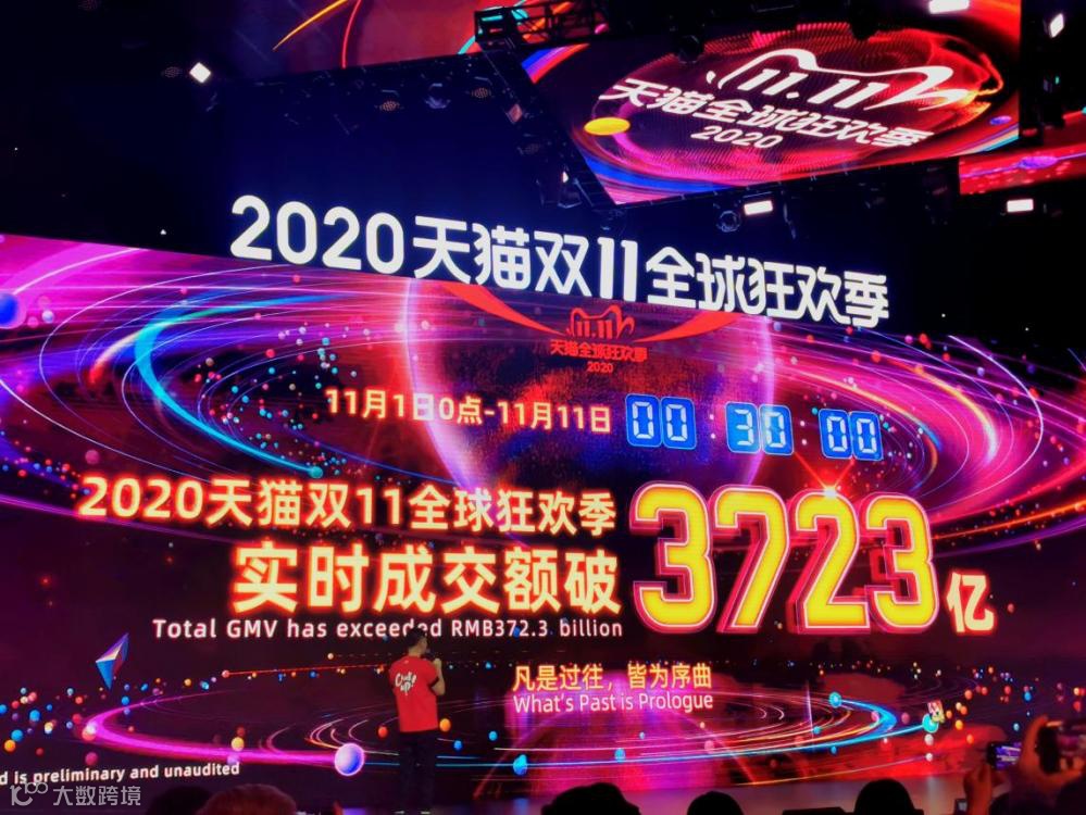 根据天猫双11数据显示,11月1日至11日0点30分,2020年天猫双11全球狂欢季实时成交额突破372300000000元!