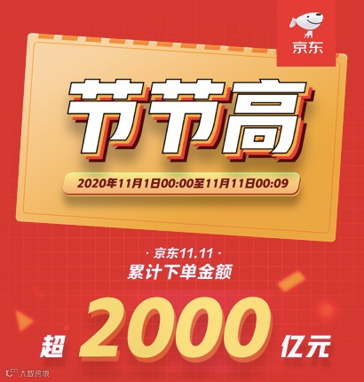 根据京东提供的数据,11月1日00:00至11月11日00:09,京东11.11全球热爱季累计下单金额突破2000亿元,再一次创造纪录。