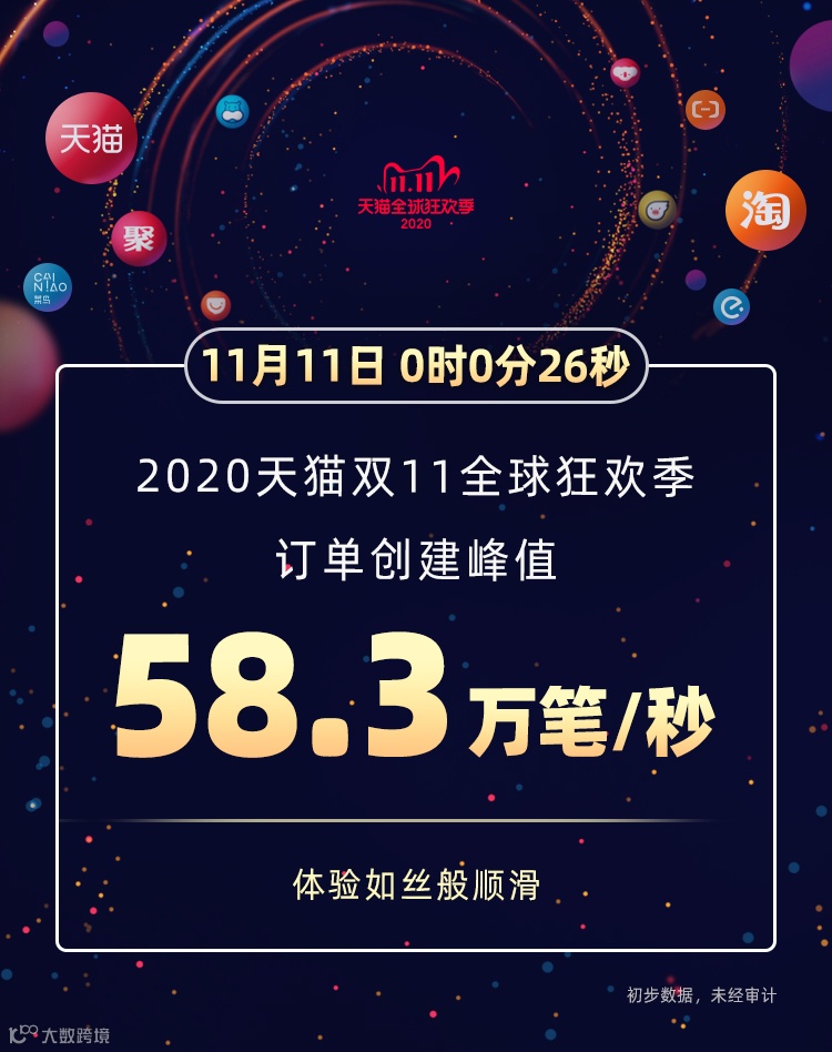 11月11日零点零分26秒,天猫双11迎来流量洪峰,订单创建峰值达58.3万笔/秒。据悉,今年天猫双11首次实现阿里巴巴全面云原生化,58.3万笔/秒的新纪录是2009年第一次双11的1457倍,万笔交易的资源成本较4年前下降80%。