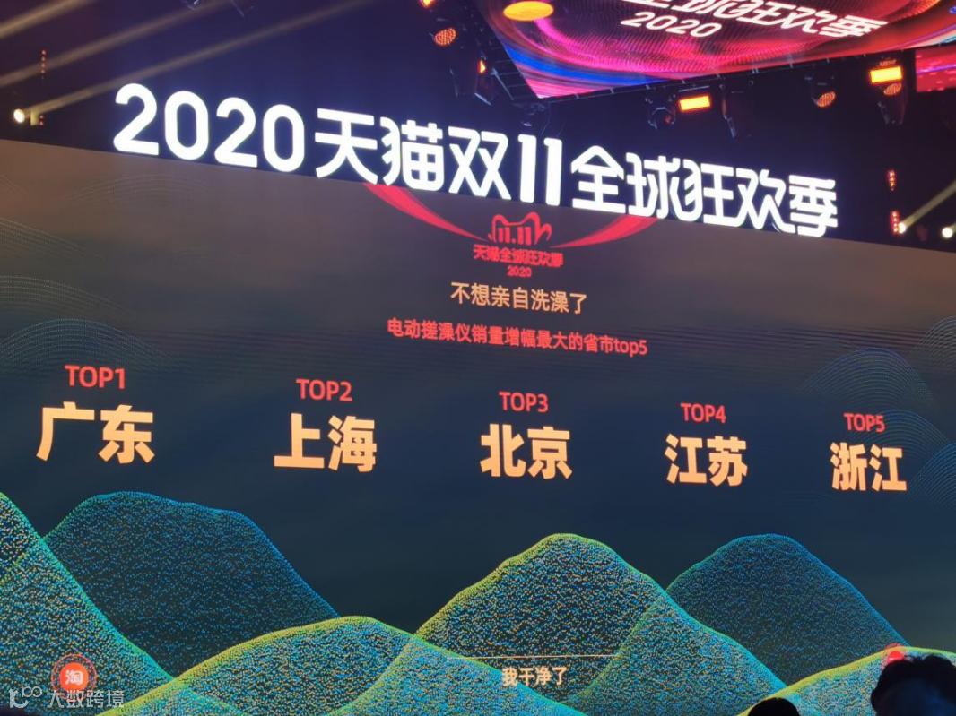 比如,今年双11期间,电动搓澡仪销量增幅最大的省市top5分别为:广东、上海、北京、江苏、浙江;