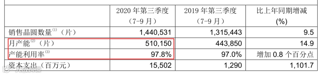 产能方面,折合成8英寸计算,中芯国际第三季度月产能为51.02万片,同比增长14.9%;当季产能利用率为97.8%,同比提高0.8个百分点。