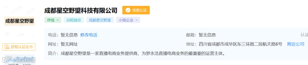 中国证券报记者注意到,星空野望成立仅半年,但却是罗永浩直播电商业务最重要的运营主体。