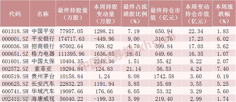 从持仓市值变动情况来看,Choice数据显示,本周北向资金对5只个股的持仓市值增加超过5亿元,分别为中国平安、平安银行、招商银行、格力电器、中国太保,持仓市值分别增加22.34亿元、17.23亿元、17.03亿元、16.35亿元、8.22亿元,其中北向资金减仓平安银行449.96万股,对其他四只个股均进行了加仓,从市场表现来看,这5只个股本周均逆势上涨。