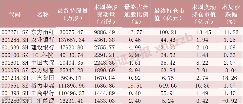 从市场表现上来看,本周北向资金持仓市值减少额前十股,股价均出现下跌,即除东方雨虹、恒立液压外,北向资金对其他8只个股的持仓市值减少既有减仓带来的持仓市值减少,也有下跌带来的持仓市值减少。值得注意的是,本周北向资金逆势加仓东方雨虹9886.49万股,但仍未阻止东方雨虹的下跌,本周东方雨虹累计下跌逾11%。