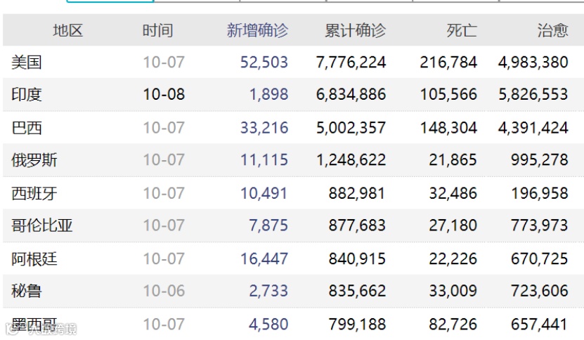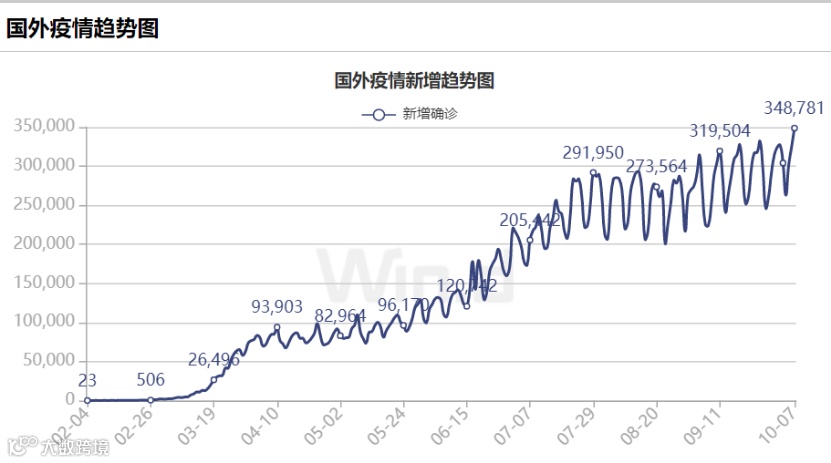 国庆假期内,海外疫情仍在发酵,美国新增案例持续反弹。Wind数据显示,10月7日,美国新增确诊超5万例。约翰斯·霍普金斯大学发布的新冠肺炎疫情最新统计数据显示,截至北京时间10月8日15:45,美国新冠肺炎确诊病例累计超过755万例,死亡病例为211828例。