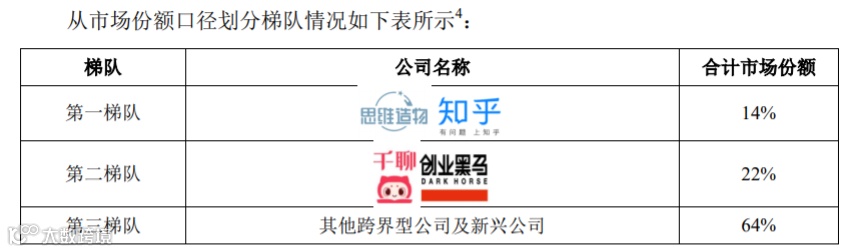 根据艾瑞咨询,思维造物及知乎属于中国终身教育行业第一梯队。2019年,从通识教育相关收入口径计算,公司及知乎属于市场第一梯队,创业黑马等属于第二梯队。