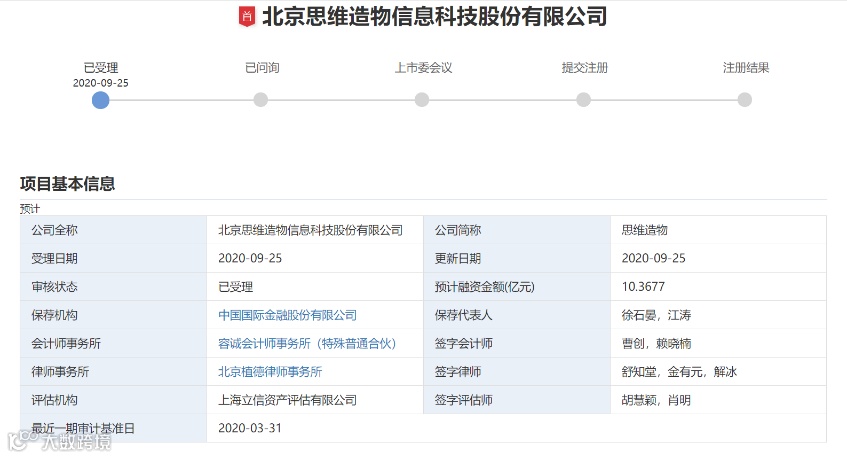 得到App的运营主体思维造物9月25日正式递交创业板上市招股书,公司拟公开发行1000万股股票(行使超额配售选择权之前),募集10.37亿元资金。