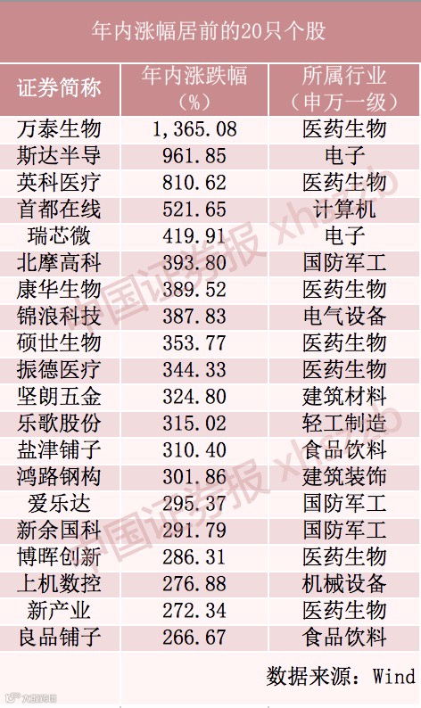 A股市场已走过今年四分之三的交易日,在过去的9个月中,我们经历了大跌,感受了沪指3个交易日累涨逾10%的火热行情,同时,也见证了多只个股年内逐渐实现翻倍、甚至翻十倍的靓丽成绩。