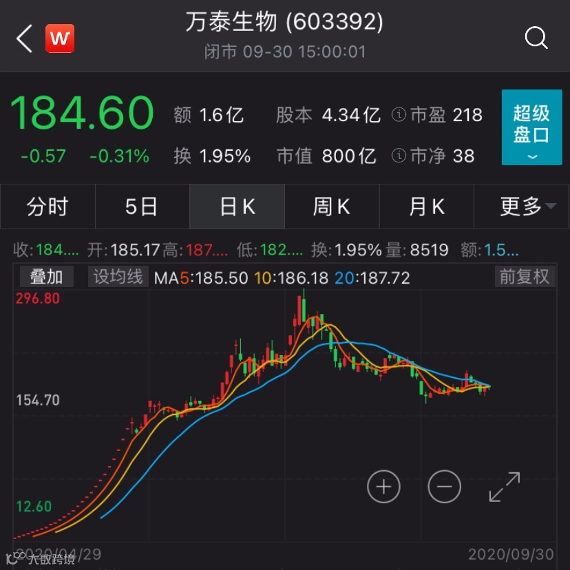 值得注意的是,万泰生物今年4月29日上市交易,这意味着,万泰生物从上市到10倍牛股,仅用了5个月的时间。