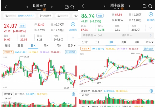 10月28日,均胜电子早盘高开高走,最后以涨停收盘,报收24.07元/股。而被冯柳减持的顺丰控股连续两个交易日下跌。
