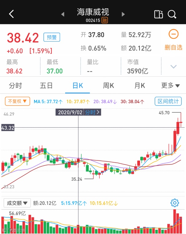 10月23日晚,海康威视披露三季报,截至9月末,冯柳旗下的高毅邻山1号持有海康威视2.31亿股,持股比例2.47%,新进公司第5大股东席位。该消息一出,10月26日,海康威视盘中涨停,收盘大涨9.3%,并且10月27日、10月28日连续两个交易日继续上涨。