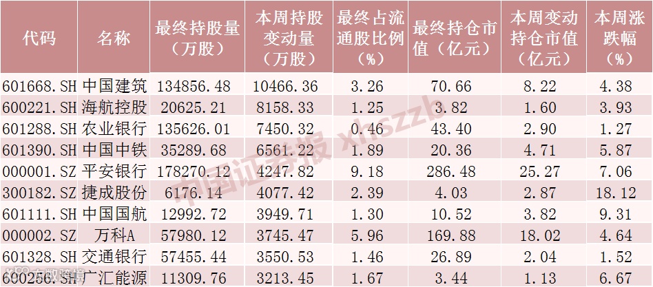 Choice数据显示,截至9月18日,北向资金持仓市值为1.97万亿元,本周北向资金持仓市值增加约538亿元。本周北向资金共计加仓801只个股,其中加仓深市个股461只。本周北向资金对65只个股的加仓股数超过1000万股,加仓股数最多的中国建筑被加仓1.05亿股,此外加仓海航控股、农业银行、中国中铁超6000万股。
