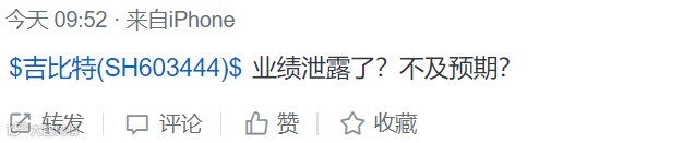 吉比特董秘梁丽莉坦言从上午开始一直在接听电话,公司基本面没有发生什么异常状况,明晚公司将发布三季报。“我个人理解是临近三季报,市场可能对公司业绩预期上有各自的估计。(大跌原因)具体我也说不清楚。”