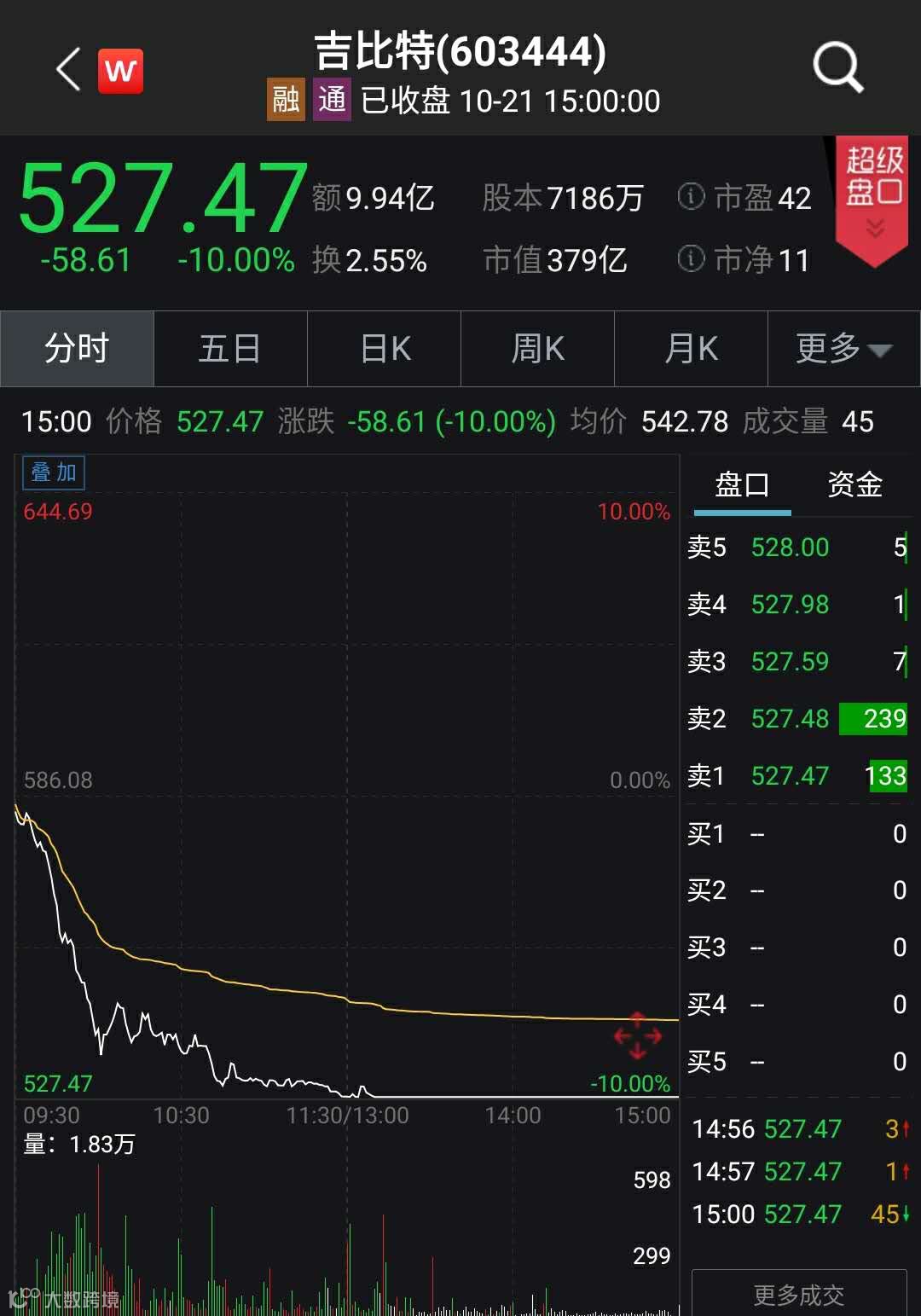 素有“游戏界茅台”的吉比特10月21日开盘放量大跌超7%,午后直奔跌停,截至收盘,跌幅达10%,报527.47元,全天市值蒸发43亿元。