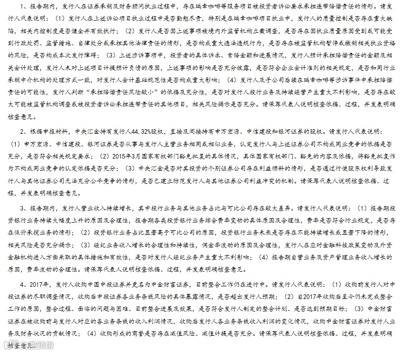 其中,就中金公司首发事项,证监会反馈意见主要涉及四大问题,分别是瑞幸咖啡项目、同业竞争、投行业务、中金财富整合等。
