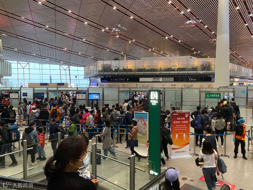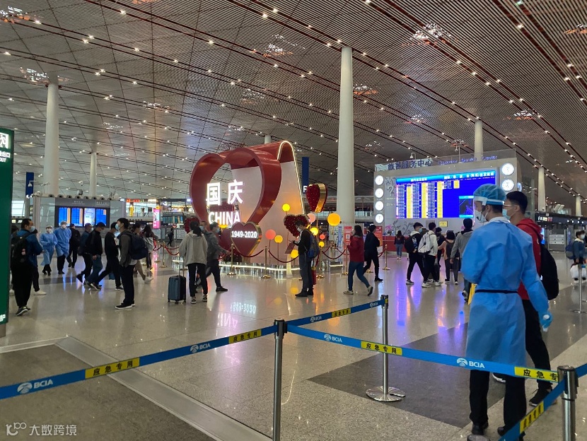早上7:45左右,首都机场已是人头攒动,安检口更是大排长龙。机场安检人员对中证君表示:“我干安检三四年了,这阵仗,还是头一回见,国庆这么多人,跟春运差不多了。”