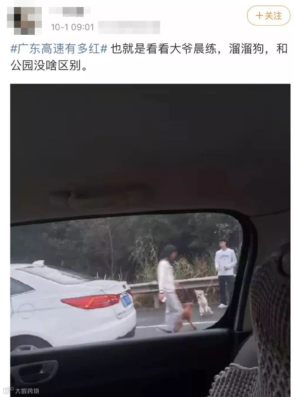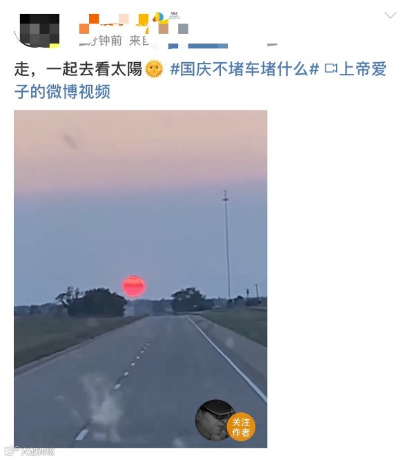 在堵车空隙,网友们也发明出各种自娱自乐的活动打发时间。比如,看个日出、遛下狗、做个晨练。