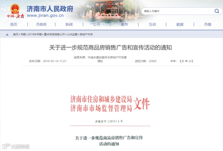 对于开发商借地铁营销,济南相关部门曾发文禁止蹭地铁热度进行宣传。2019年5月,济南市住建局联合济南市市场监督管理局下发《关于进一步规范商品房销售广告和宣传活动的通知》,明确不得利用规划或在建中的学校、地铁作为楼盘卖点宣传。