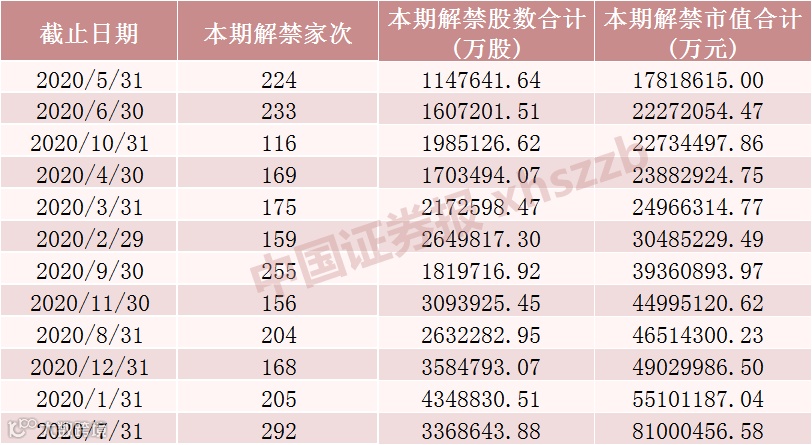 解禁比例居前的横店影视、华森制药、金鸿顺解禁后流通盘将分别增加754.72%、467.86%、300.00%。此外,赛诺医疗、申联生物、渝农商行、广宇发展、金逸影视解禁后流动盘也将增加300%以上。
