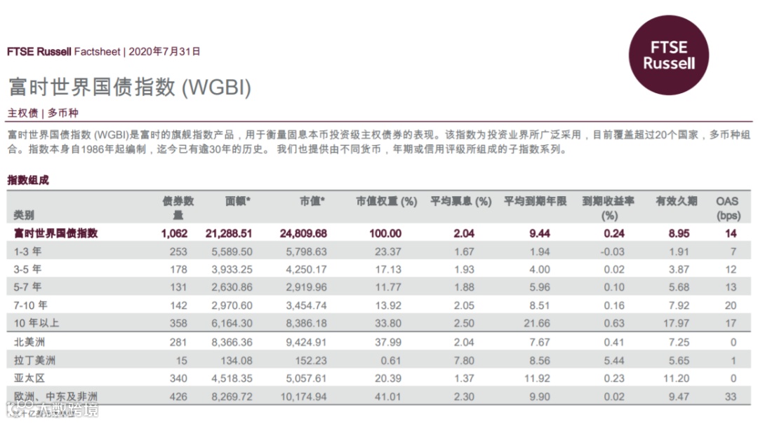 WGBI是业内公认是三大国际债券指数之一,也是三大指数中历史最悠久的一只。其前身是花旗全球债券指数(Citi World Government Bond Index),最早可追溯到所罗门兄弟于上世纪80年代创建的国际债券指数。